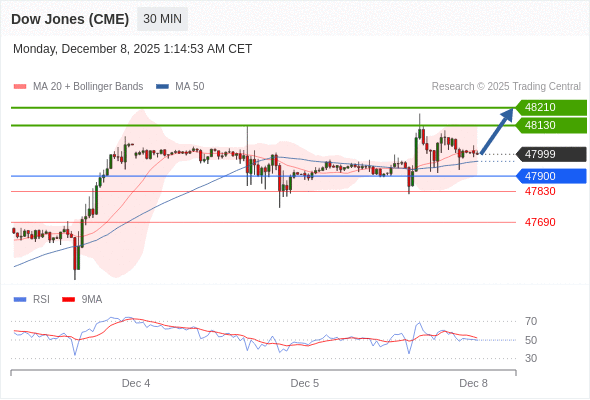 在 47900 之上,看涨,目标价位为 48130 ,然后为 48210 。