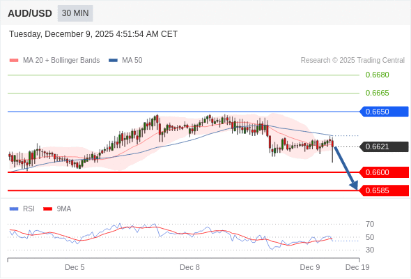 在 0.6650 之下,看跌,目标价位为 0.6600 ,然后为 0.6585 。