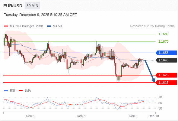 在 1.1655 之下,看跌,目标价位为 1.1625 ,然后为 1.1615 。