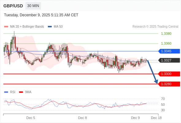 在 1.3345 之下,看跌,目标价位为 1.3300 ,然后为 1.3280 。