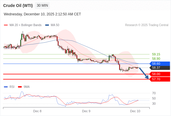 在 58.60 之下,看跌,目标价位为 58.00 ,然后为 57.70 。