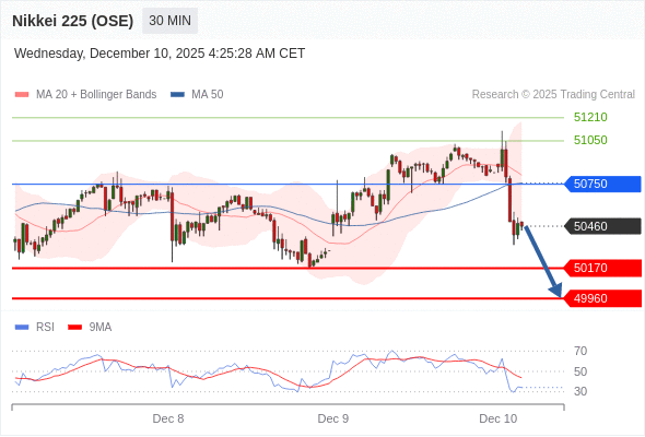 交易策略: 在 50750 之下,看跌,目标价位为 50170 ,然后为 49960 。