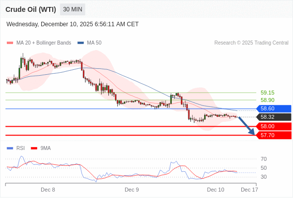 交易策略: 在 58.60 之下,看跌,目标价位为 58.00 ,然后为 57.70 。