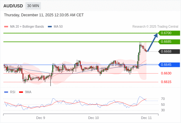 在 0.6645 之上,看涨,目标价位为 0.6685 ,然后为 0.6700 。