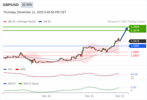 英镑/美元 当日内 : 看涨,当 1.3392 为支撑位。