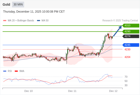 在 4245 之上,看涨,目标价位为 4290 ,然后为 4310 。