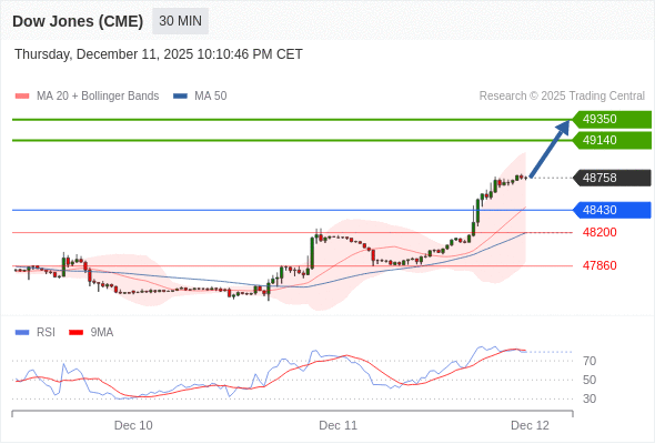 在 48430 之上,看涨,目标价位为 49140 ,然后为 49350 。