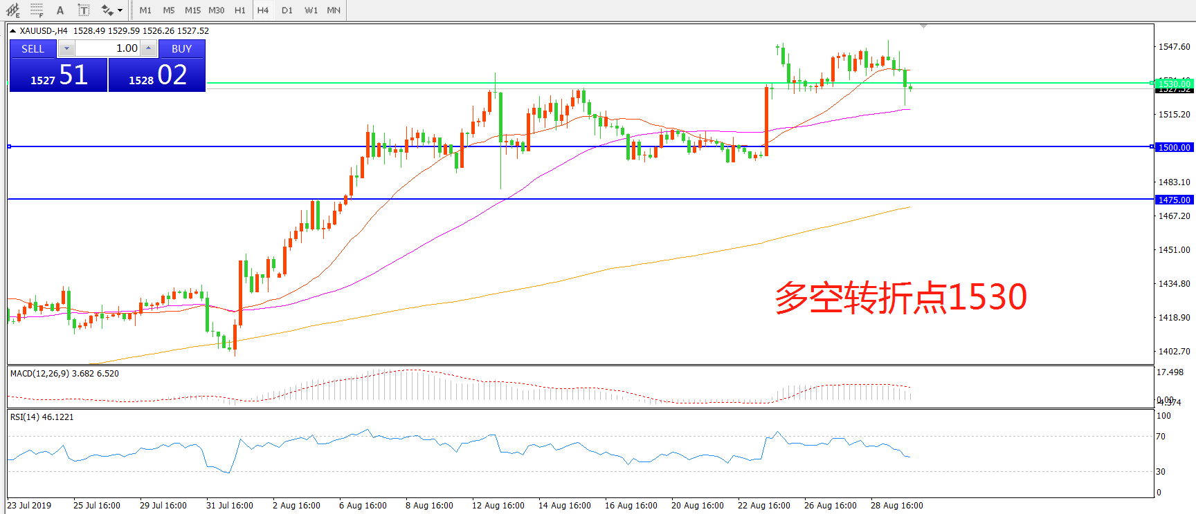 昨日中美贸易方面传来了新消息。中国商务部新闻发言人高峰表示,中方已经表明态度,我们坚决反对贸易战升级,愿意以冷静的态度通过磋商与合作解决问题。美国总统特朗普则表示,美国和中国定于周四举行“不同级别”的贸易谈判。贸易谈判的重启缓解了市场的紧张情绪,金价一度大跌,随后震荡回升,最终收报1527.08美元/盎司,中期走势依然看多。