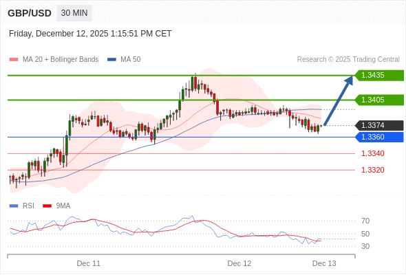 在 1.3360 之上,看涨,目标价位为 1.3405 ,然后为 1.3435 。