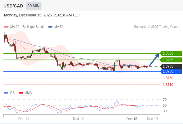 在 1.3750 之上,看涨,目标价位为 1.3785 ,然后为 1.3805 。