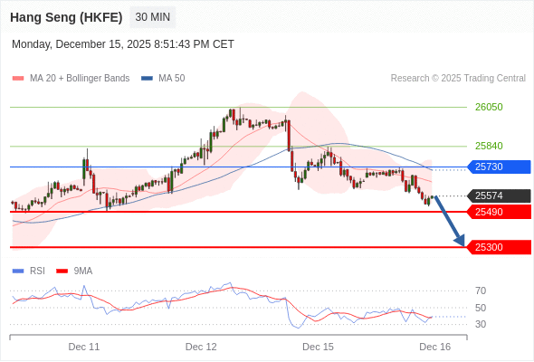 香港恒生指数期货 当日内: 短期关键阻力位在25730。
