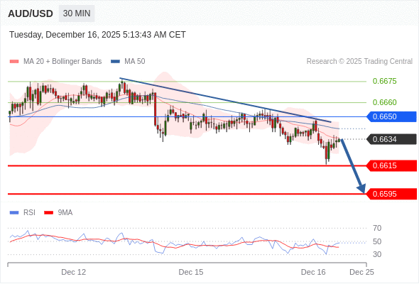 在 0.6650 之下,看跌,目标价位为 0.6615 ,然后为 0.6595 。