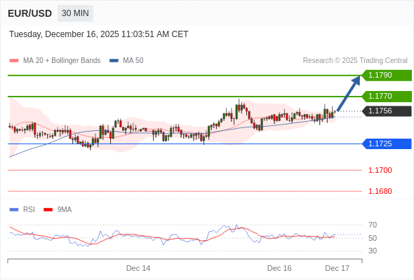 在 1.1725 之上,看涨,目标价位为 1.1770 ,然后为 1.1790 。