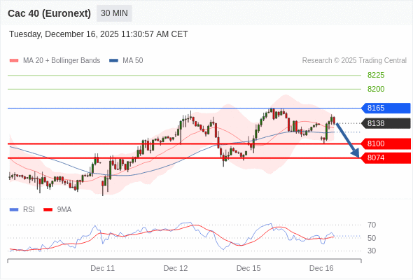在 8165 之下,看跌,目标价位为 8100 ,然后为 8074 。