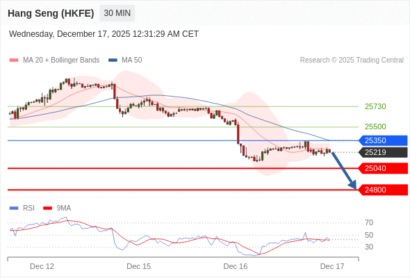 交易策略: 在 25350 之下,看跌,目标价位为 25040 ,然后为 24800 。