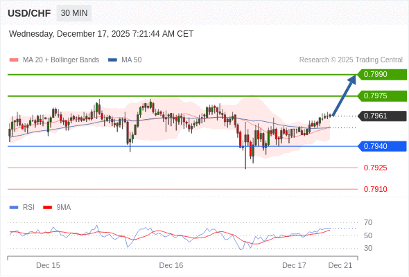 在 0.7940 之上,看涨,目标价位为 0.7975 ,然后为 0.7990 。