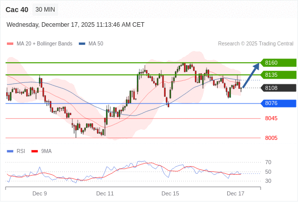 在 8076 之上,看涨,目标价位为 8135 ,然后为 8160 。