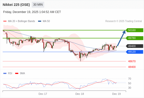 在 49120 之上,看涨,目标价位为 49780 ,然后为 50160 。