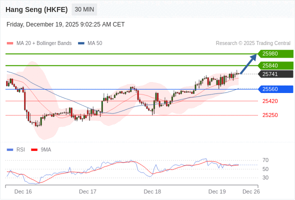 在 25560 之上,看涨,目标价位为 25840 ,然后为 25980 。