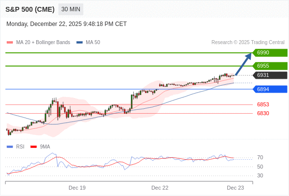 在 6894 之上,看涨,目标价位为 6955 ,然后为 6990 。