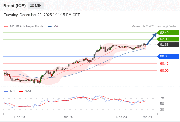 在 60.90 之上,看涨,目标价位为 62.00 ,然后为 62.40 。