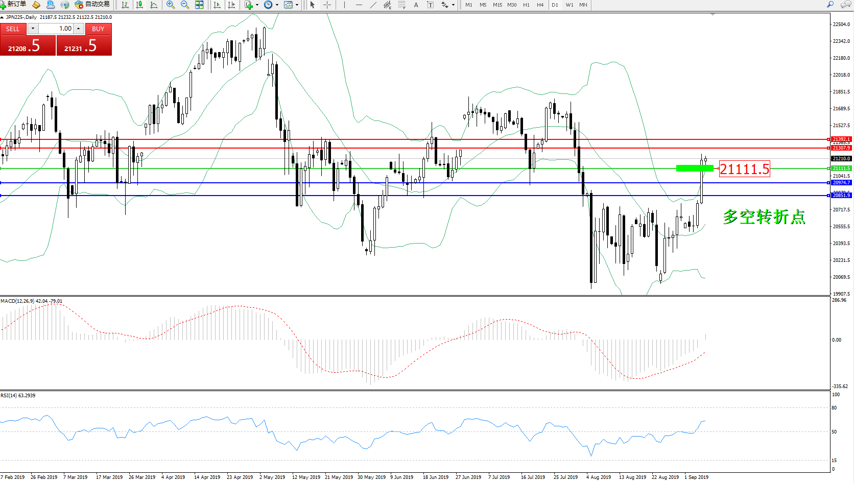 日经225指数9月6日(周五)收盘上涨43.16点,涨幅0.20%,报21165.50点。日本7月家庭支出连续八个月上升,然升速放缓;这给国内消费敲响了警钟,日本已为外部需求疲弱所苦。全球放缓与贸易僵局的相关风险,正在威胁到经济增长,并加重了日本央行扩大刺激的压力。周五数据显示,日本7月所有家庭支出较上年同期上升0.8%,不过增速逊于6月的2.7%,但7月的上升仍创下了2000年有可比数据以来最长的一段扩张时间,并且表明在下月将消费税从8%调升至10%之前,内需仍保持韧性。