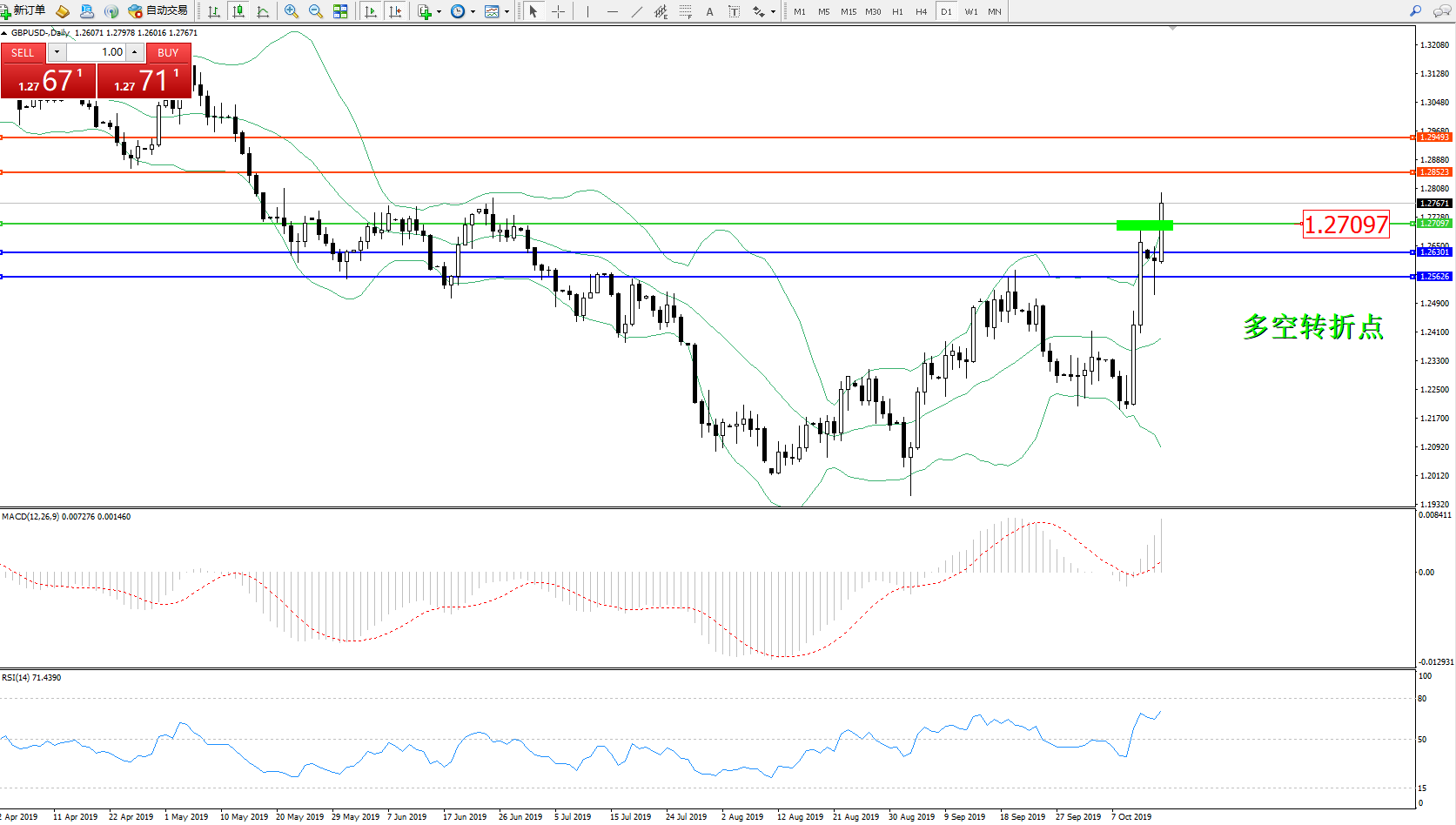 交易策略:1.27097上方看涨,目标1.28523、1.29493
