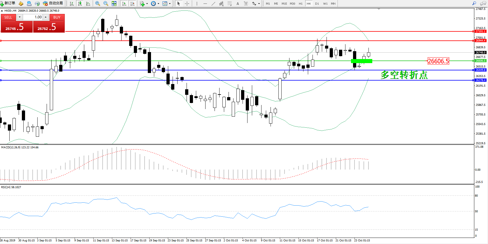 恒指HK50 ——4小时K线图显示: