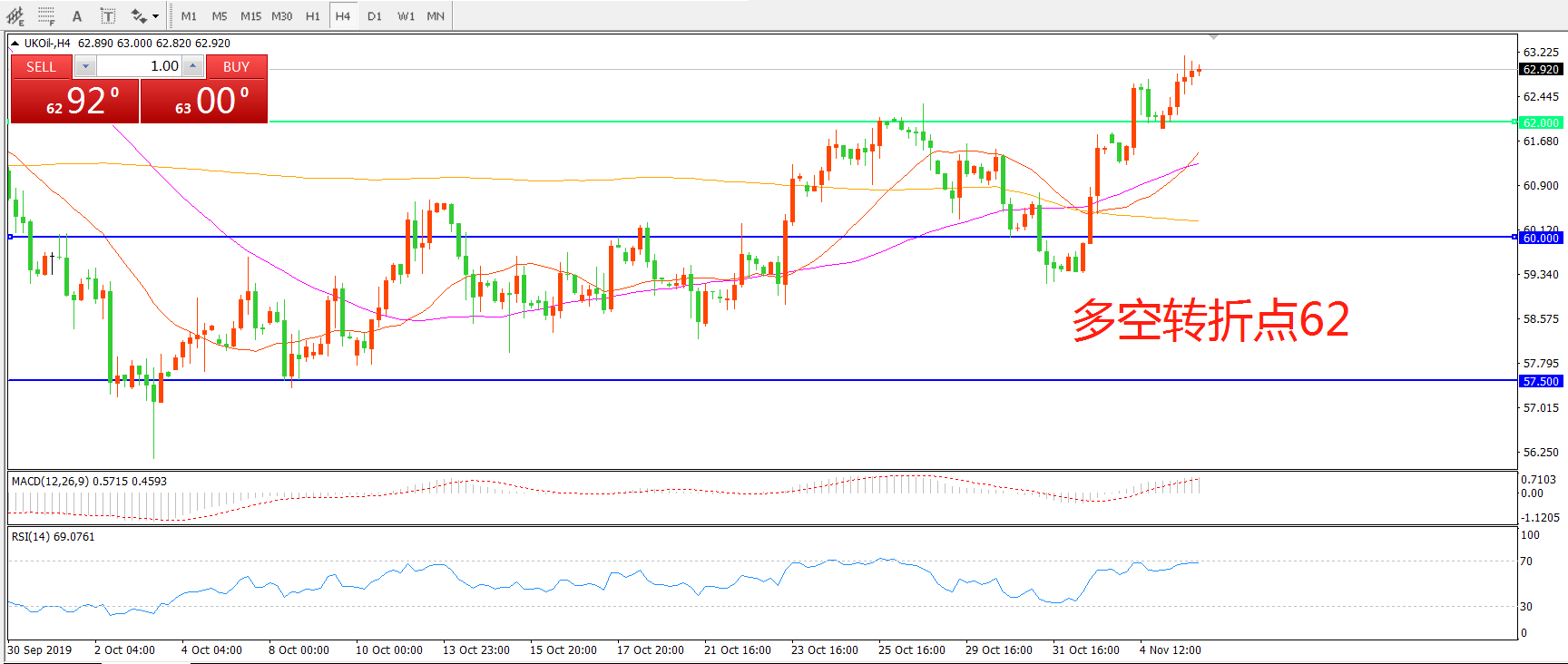 多空转折点:62.00