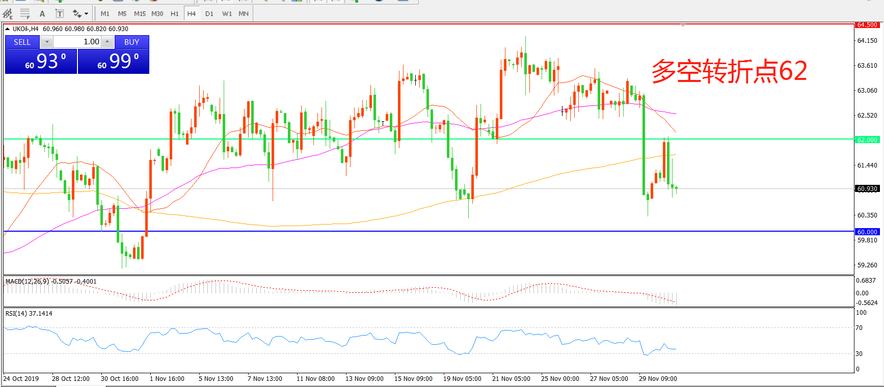 多空转折点:62.00