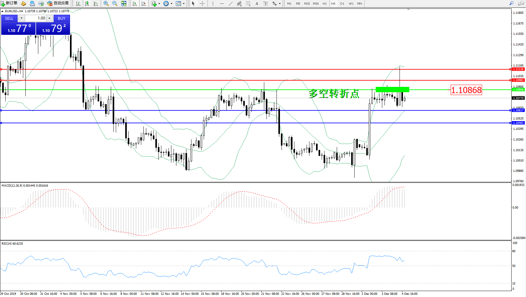 交易策略:1.10868下方看跌,目标1.10617、1.10465
