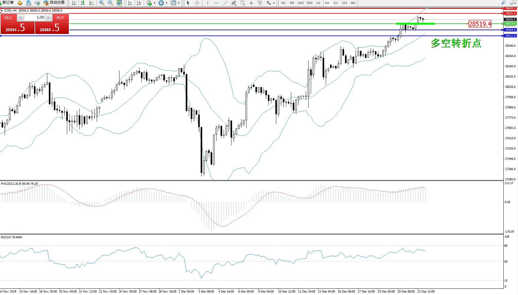 道琼斯指数12月23日(周一)收盘上涨96.40点,涨幅0.34%,报28551.53点。美国经济数据喜忧参半;11月份新建住宅销量增长,耐用品订单意外下跌。美元指数年内上涨1.6%。在一轮避险浪潮中,美元因其避险货币性质而受益;当市场出现大涨行情时,美元也受益,因美国经济的表现优于世界其他地区。自本月早些时候达成第一阶段贸易协议以来,美元也受到了支撑。美国纽约证券交易所平安夜,提前于北京时间12月25日02:00休市。
