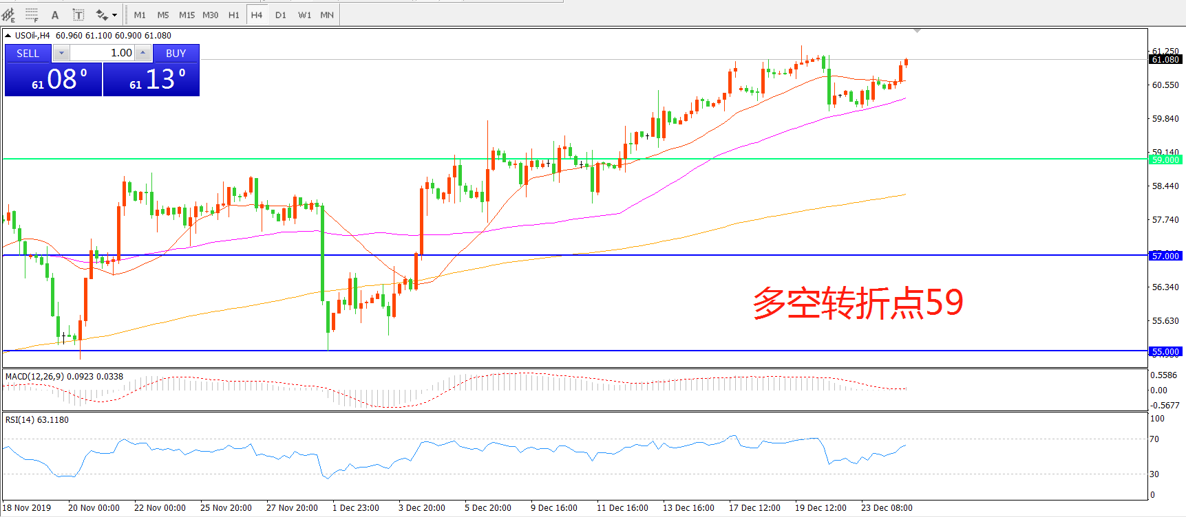 交易策略:在59.00 之上看涨,目标62.00 65.00