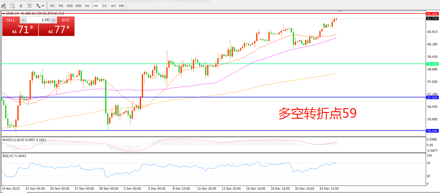 交易策略:在59.00 之上看涨,目标62.00 65.00
