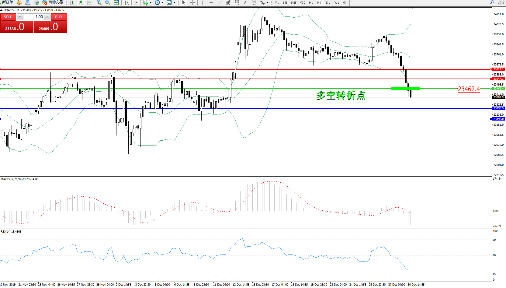 日经225指数12月30日(周一)收盘下跌160.72点,跌幅0.67%,报23677.00点。日本财务省2019年12月18日发布的贸易统计报告显示,受全球经济减速影响,2019年11月份日本出口额同比下降7.9%,为连续第12个月同比下降,这是日本出口截至2016年11月连降14个月以来的持续时间最长的下降。日本政府2019年也四次下调日本经济增长预期,直到2019年12月推出大规模刺激措施后才略有改善。2019年12月18日,日本政府对本财年的增长预估维持为0.9%,但上调了下一财年经济增长预估;同时,预计外需将拉低下个财年经济增幅0.1个百分点,低于原先预计的贡献0.2个百分点。展望2020年,日本经济低利率、低通胀、低增长的特征仍不会有太大变化,而全球贸易环境仍将制约日本经济增长的改善。