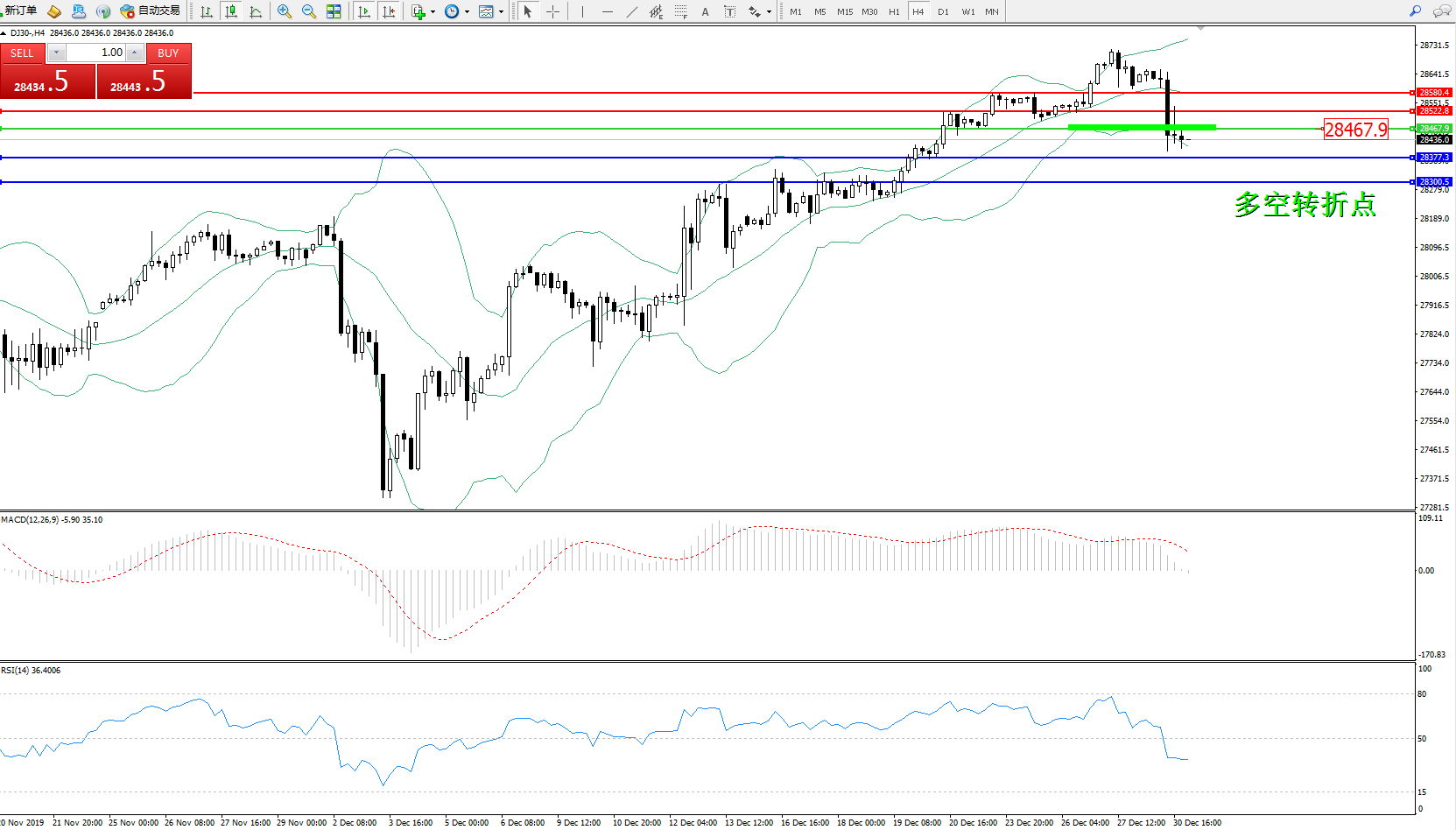 道琼斯指数12月30日(周一)收盘下跌183.10点,跌幅0.64%,报28462.14点。美国股市在2019年辉煌一年的倒数第二天走低,市场交投淡静。投资者在假期前夕市场淡静之际谨慎行事。今年全球股市基准指数创下新高。此外,由于美联储处于按兵不动的状态,而且美国贸易谈判似乎距离新突破还很遥远,因此交易员可能仍然不愿重新投入高风险市场。