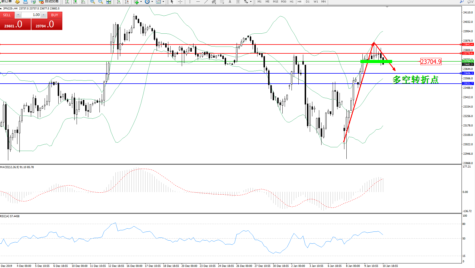 技术点评:多头动力不断延续布林带指标上轨持续上攻后遇阻开始回撤,有进一步下移态势,布林带指标有收口迹象,MACD指标处于多头区域高位整理有回撤态势,RSI指标处于多头区域高位整理平移中;