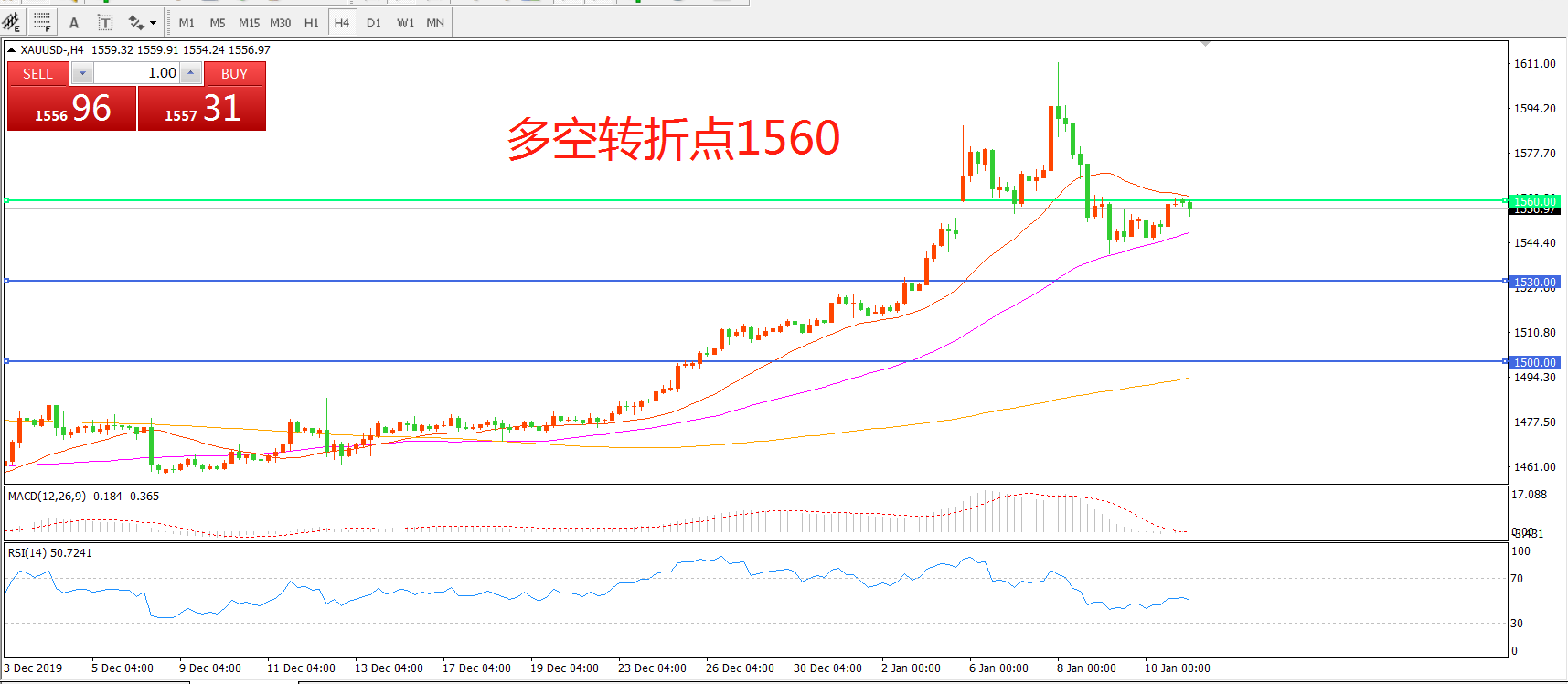 备选策略:在1560.00之下看跌,目标1530.00 1500.00