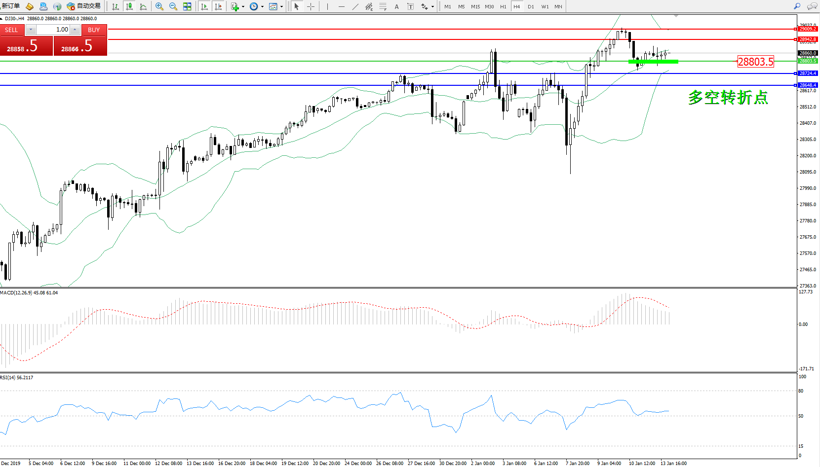 道琼斯指数1月13日(周一)收盘上涨82.50点,涨幅0.29%,报28906.31点。随着美国股市攀升,市场重回风险偏好升温的模式,财报季拉开帷幕以及美中签署第一阶段贸易协议预计本周将主导市场。地缘政治紧张局势升级的风险消除,消费者超级强大,经济虽在放缓但依然强劲。美联储持观望态度。现在与中国相关的消息也退居次席,在伊朗问题上,也避免了局势恶化。因此,现在的状况是没有重大新闻,一切似乎都好。