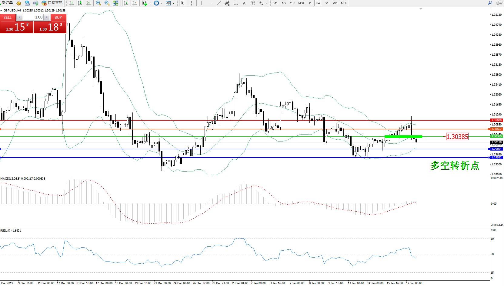 交易策略:1.30385下方看跌,目标1.29891、1.29562