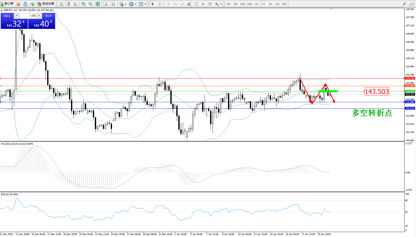 技术点评:汇价强势拉升后再度走弱,布林中轨的上破也只是昙花一现,整体布林维持水走势;MACD徘徊于0轴附近且量能不足,RSI冲高回落,预计短期汇价大概率将进一步下行。