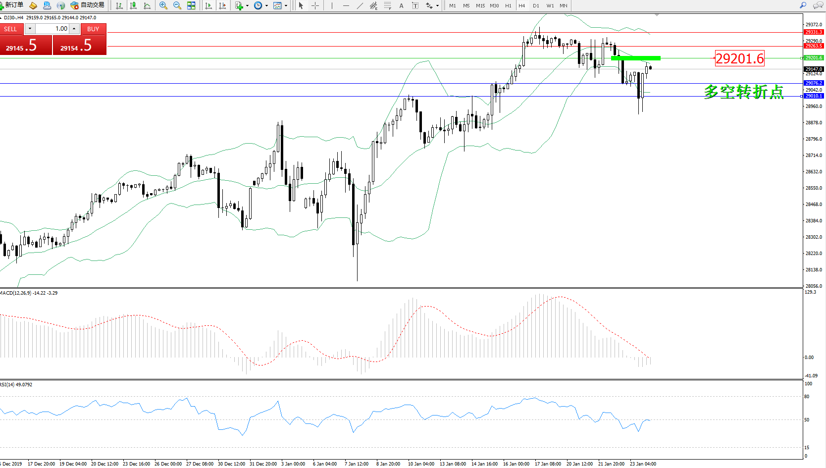 道琼斯指数1月23日(周四)收盘下跌26.20点,跌幅0.09%,报29160.09点。国内冠状病毒疫情发酵,令全球股市纷纷走低,而美国两年期和十年期国债收益率均跌至两周新低。美国30年期国债价格上涨超1个基点,收益率跌至七周新低。受影响的经济体将出现很大的动荡;这给整个市场增加了一定程度的不确定性,促使人们考虑更多的安全资产,以防疫情进一步扩大。