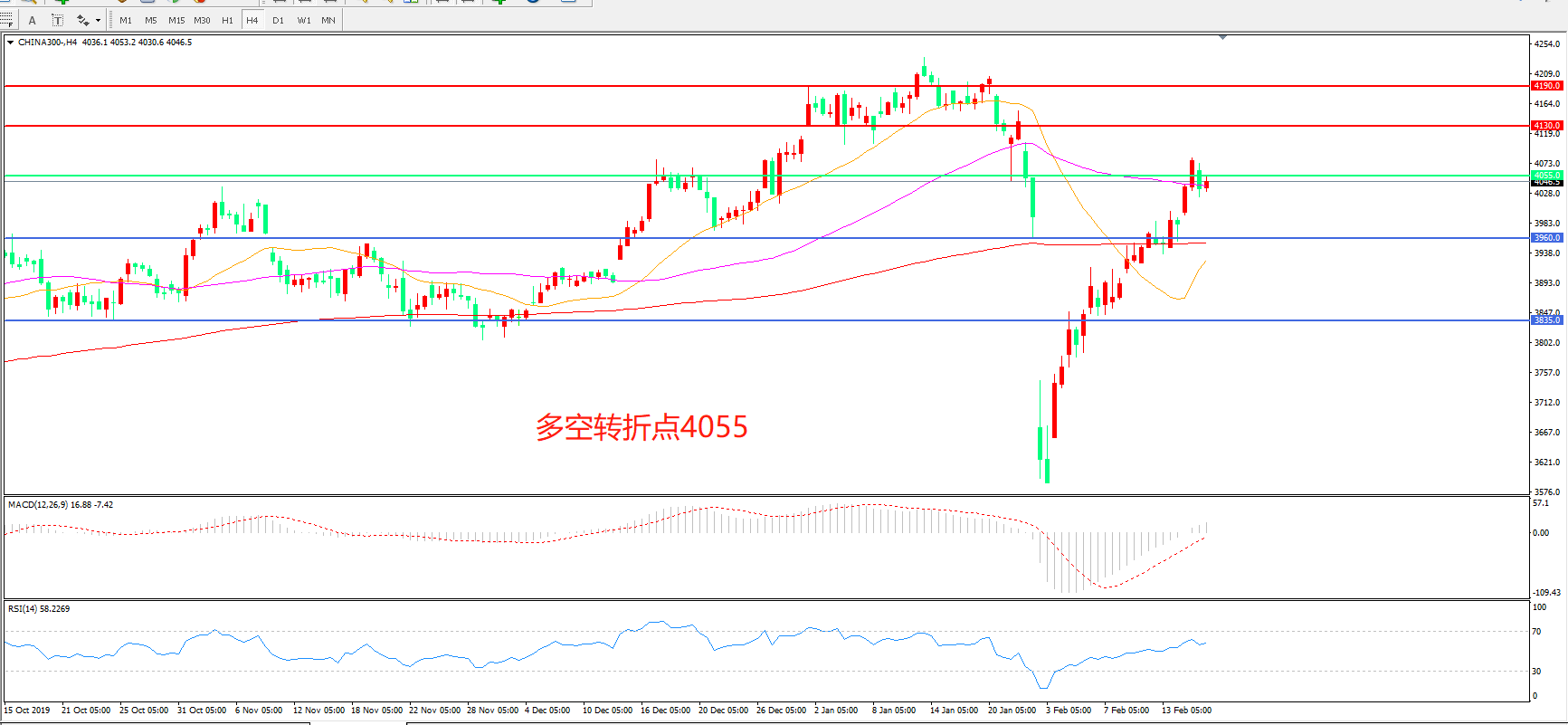 多空转折点:4055.00