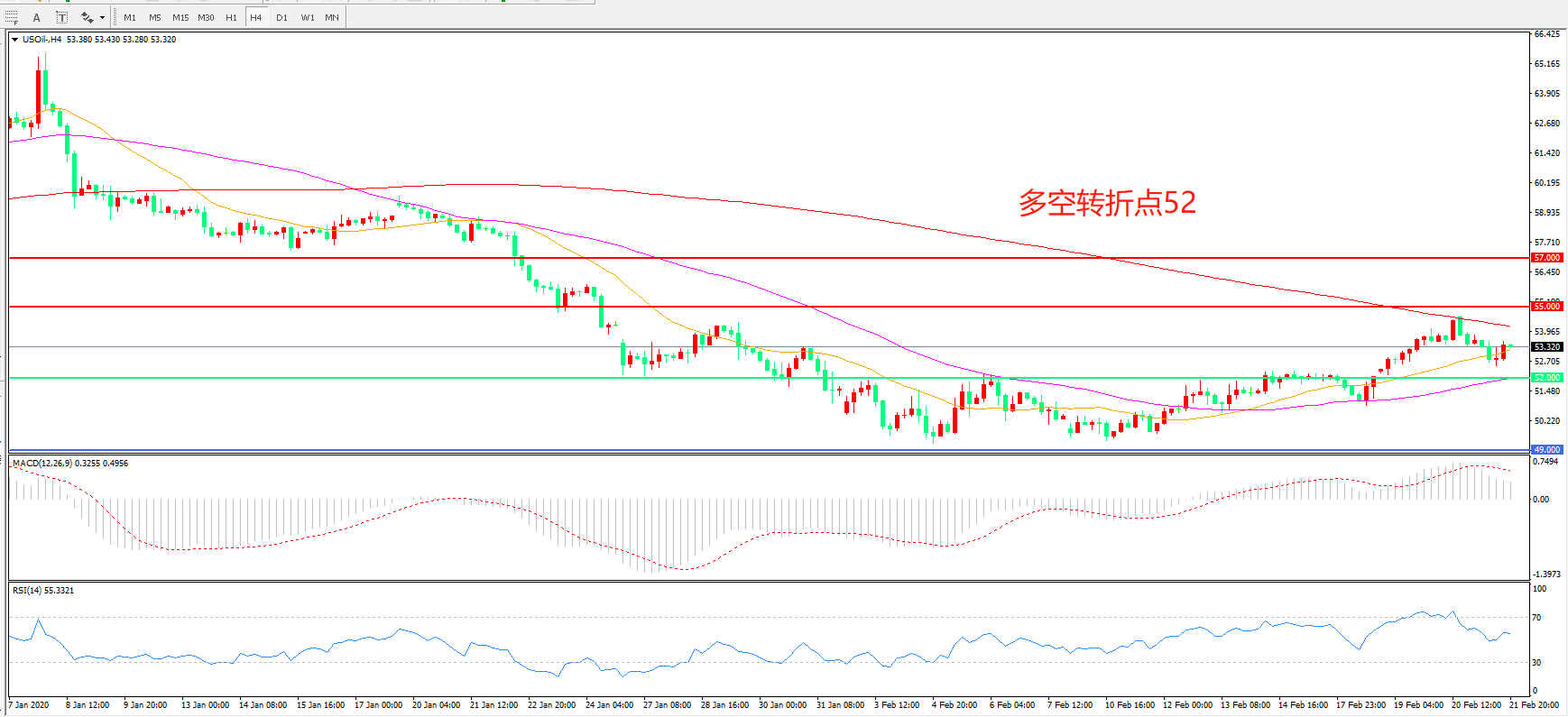 4小时图看,美油触碰200周期均线后震荡下行,走势偏弱,52美元成为多空分水岭,均线系统走平,MACD红柱减少,RSI指标向下,日内延续震荡概率较大。
