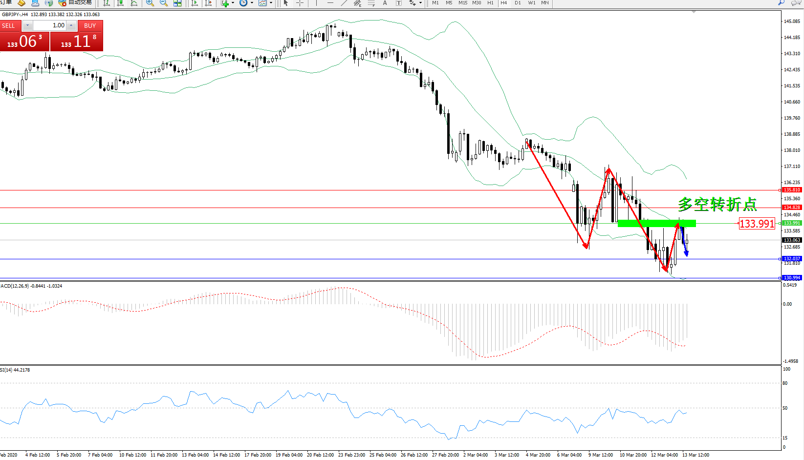 多空转折点:133.991