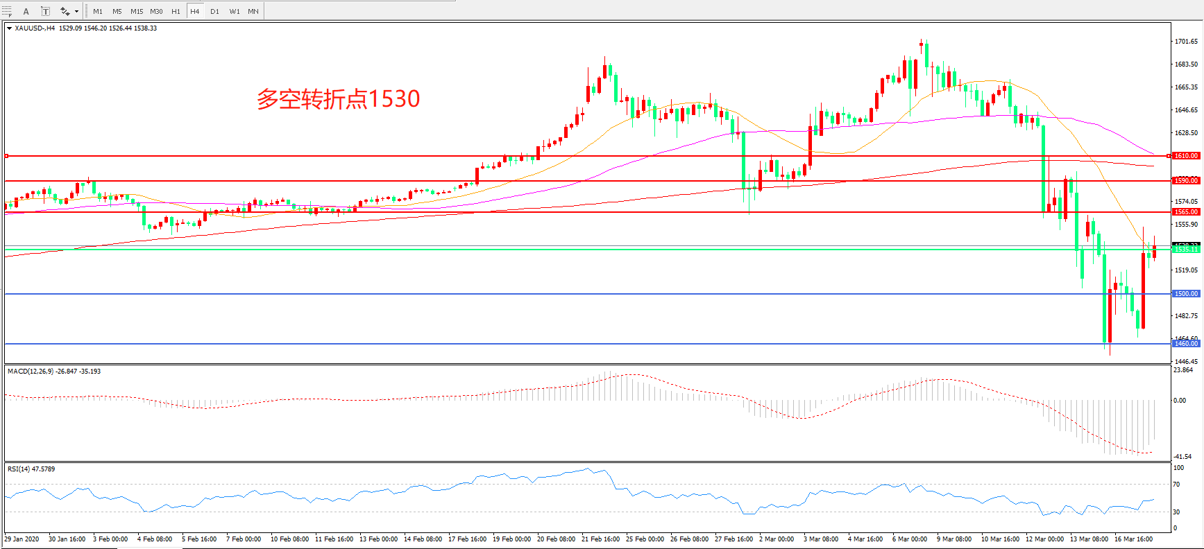 多空转折点:1535.00