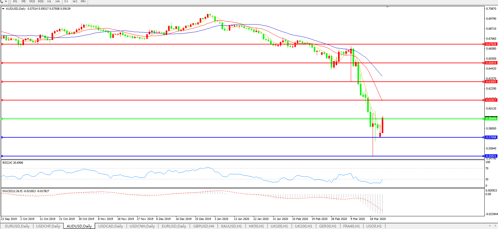 澳元兑美元AUDUSD    日线图: