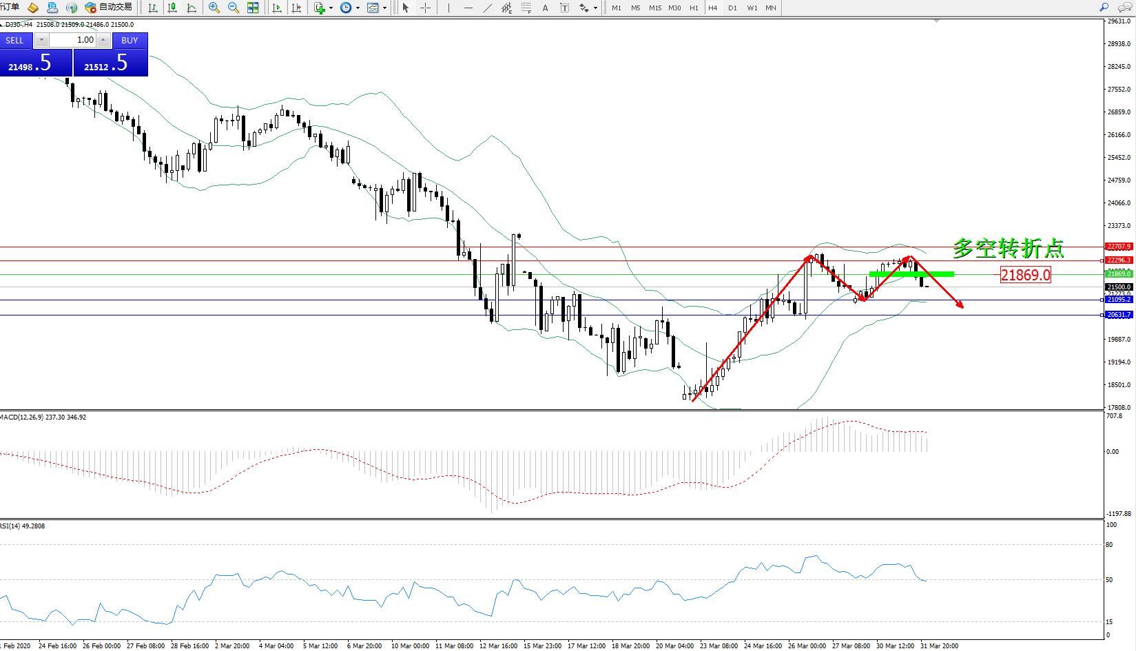 技术点评:低位多头动力持续震荡上扬后,高位呈M头型态走势开始有缓慢回撤迹象,且布林带指标呈收口走势中,空头动力开始有疲软态势,MACD指标处于多头区域缓慢整理向下移动中,RSI指标处于多头区域持续整理后下行至50均衡线附近徘徊;