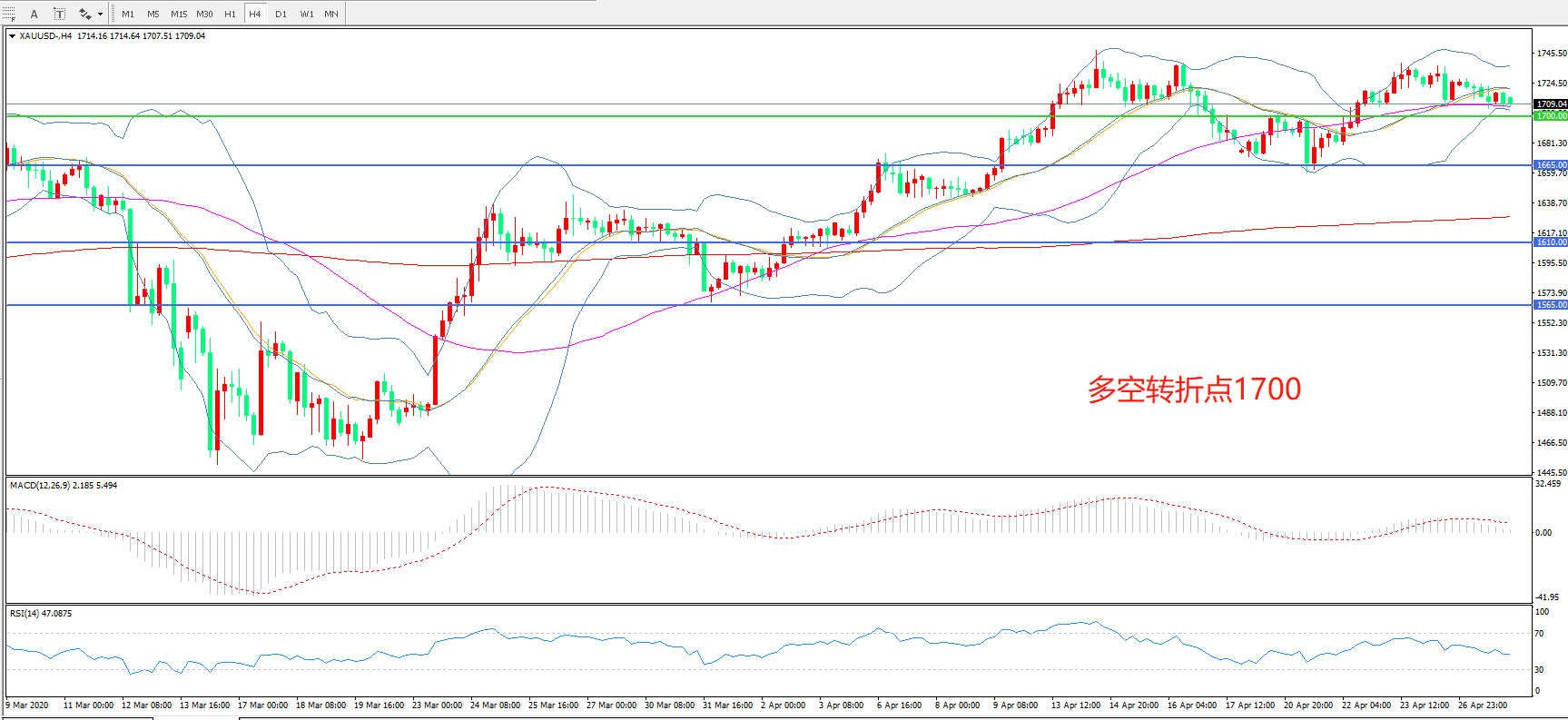 交易策略: 在1700.00 之上看涨,目标1750.00   1785.00