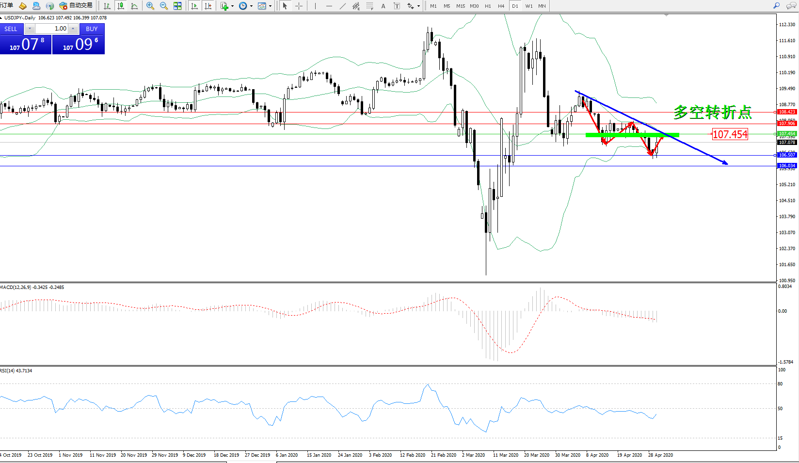 美元兑日元上涨0.47%,至107.18;受月末资金流动以及与日本黄金周假期相关的仓位调整影响,汇率早些时候下跌。交易员消化了有关日本首相安倍晋三将延长针对冠状病毒的国家紧急状态的报道。安倍周四告诉国会称,经济正面临前所未有的困难。三个月期伦敦银行间拆放款利率(LIBOR)日元兑美元也一个月来首次转为负值,显示月底美元兑日元需求强劲。交投于一个多月的低位水平,近期日元走高更多因美元指数重心下移,而非日元避险需求上升,同时美联储准备好全部的宽松工具以支撑美国经济复苏,但近期市场风险偏好情绪的好转也并未打压日元。